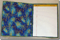 When I created the first notepad that appeared in the book, I made it with a little too much border on the left side and not enough border on the right. See: Exhibit A. [Please try to ignore my truly awful camera skills. I see time with an instruction manual ahead. Like before my next post.]Today, I finished another notebook. This time the border on the right is too large and the border on the left is too small. See: Exhibit B.