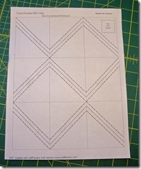 Trip on down to the sewing room to begin the day and year by sewing up the first block. The block is entirely made of half-square triangles so I know what I’m going to do. I visit the Quilting and Whatnot website and download their paper-piecing units for half-square triangles. They have every (finished) size in quarter-inch increments from 3/4" to 2 1/2".
